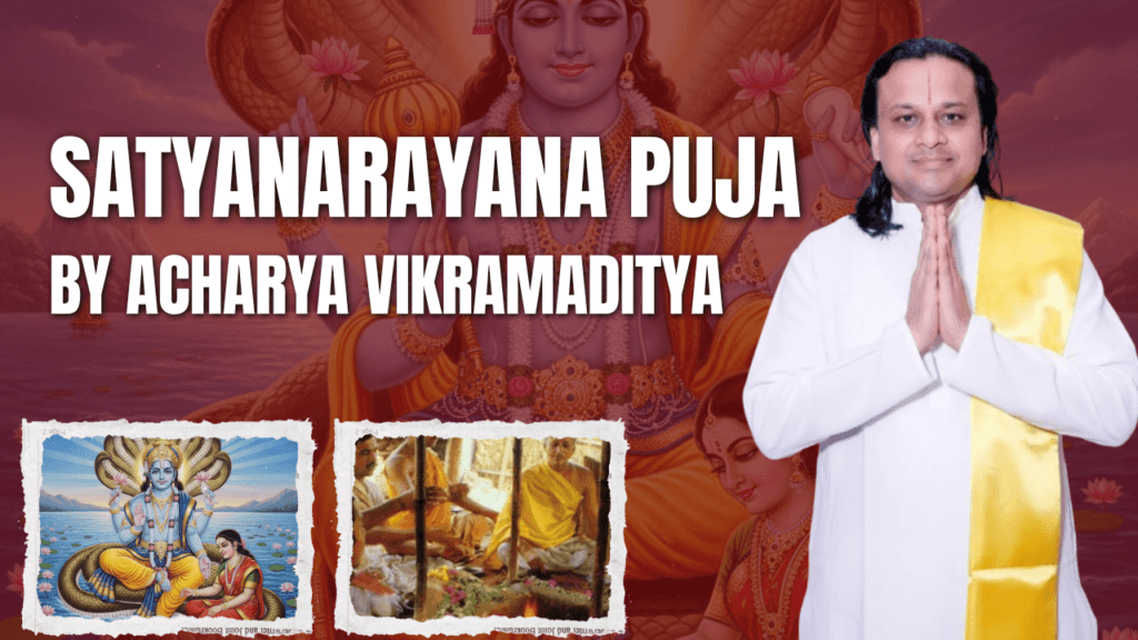 Satyanarayana Puja is performed to receive Lord Vishnu’s blessings for prosperity, peace, and fulfillment of wishes.